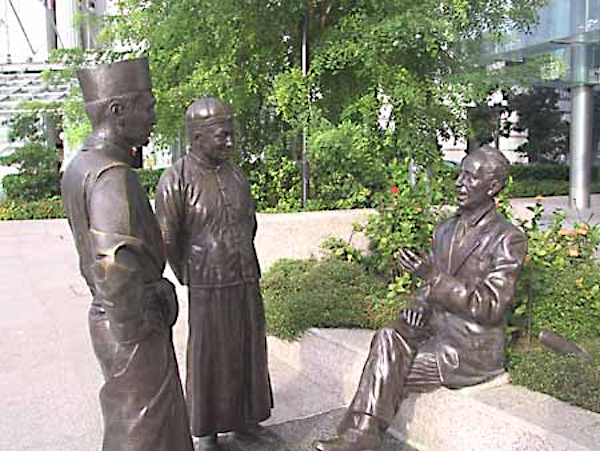 Well, there is a rule-of-thumb in marketing that “any local sale takes three visits, but an overseas one takes five”. No doubt Alex Johnston reached his five visits by being there and talking to local merchants. There is in fact a statue of him near the Cavenagh Bridge doing exactly that, talking to both Chinese and Malay traders.