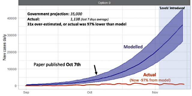 A case in point is the statement put out last week by the UK’s Office for Statistics Regulation (OSR). It rebuked UK governments for failing to provide “transparent information… in a timely manner”. It was prompted by the Halloween press conference by the Prime Minister and his scientific advisors where they claimed that without a lockdown there could be 4000 Covid deaths a day. In fact, the model from the University of Cambridge, which they were relying on, was already out of date on the day it was used when it suggested there could be 860 deaths; the actual death toll turned out to be 326, and other models proposed lower death tolls.