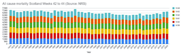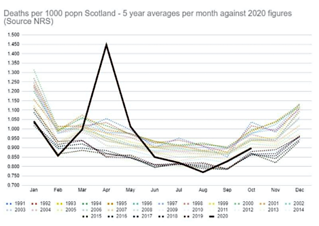 Data like the above is being culled from the National Records of Scotland and Public Health Scotland, put into comparative graphs and published on social media by a few scientists and data experts in Scotland, and even some of these feel they have to remain anonymous. Where are all the professional statisticians and academics?