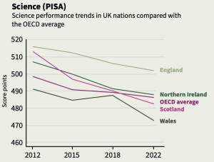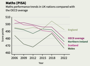 SCOTLAND’S SCHOOLS used to be the envy of the world. However, over the past quarter of a century Scotland’s performance in international league tables such as PISA (Programme for International Student Assessment) has declined dramatically. The last results showed that in all three subject areas covered by PISA, the scores of Scottish 15-year-olds fell between 2018 and 2022. The drop was 18 points in mathematics, 11 points in reading and 7 points in science. A change of 20 points is approximately equivalent to one year of mid-secondary schooling.